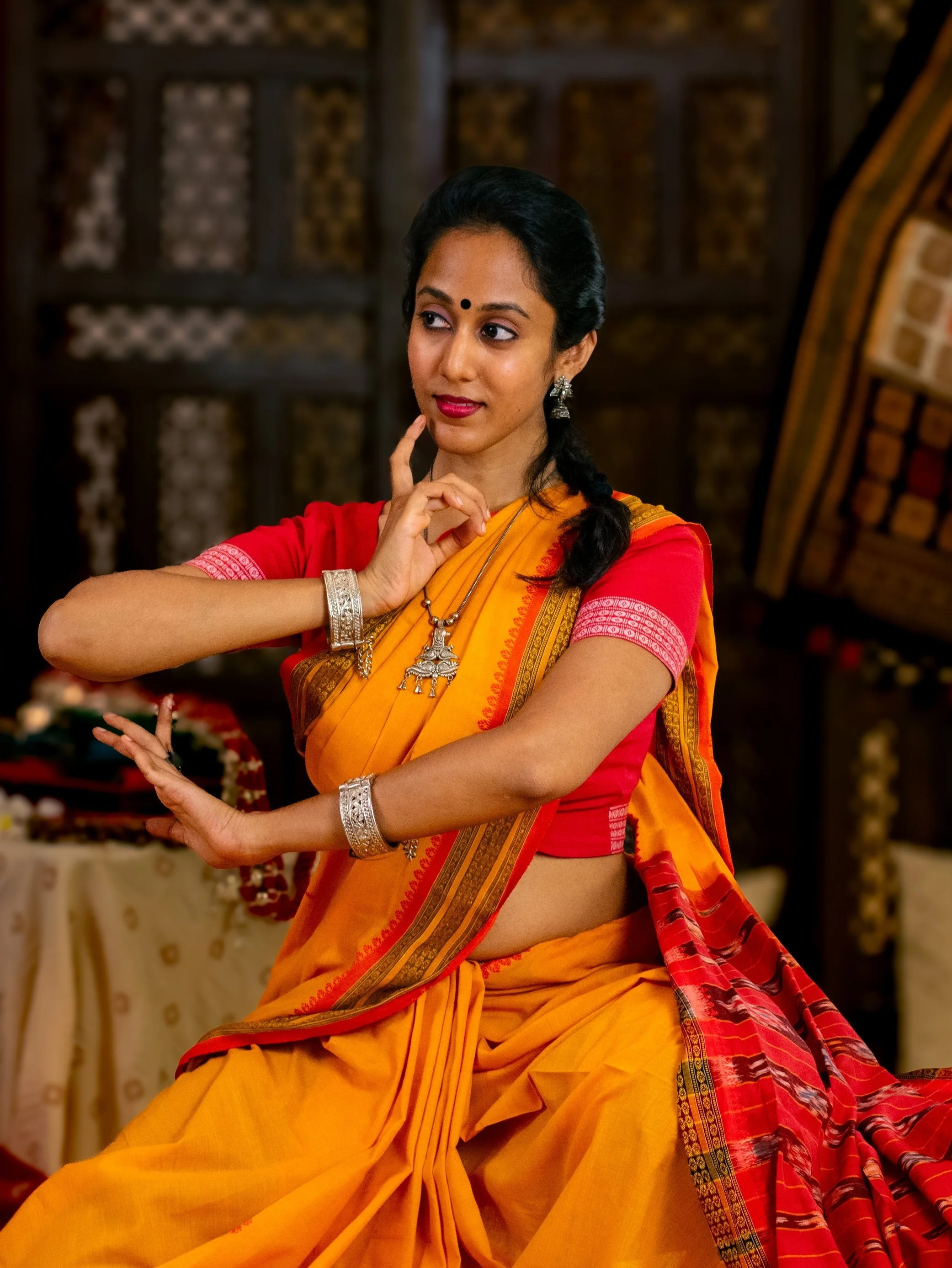 Under her guidance, Deepam Odissi Academy has expanded into a holistic arts platform. From producing shows that integrate dance with animation and Indian folk art (Roopantar – A Metamorphosis of Art) to creating interactive tools like the Deepam Dance Journal and merchandise such as the Deepam Chanderi Dupatta, Aishwarya continues to innovate while staying rooted in tradition.